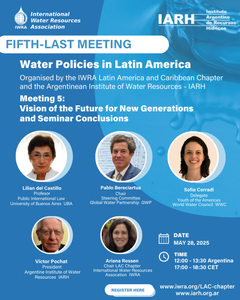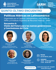 La Asociación Internacional de Recursos Hídricos -Capítulo Latinoamericano y del Caribe- (IWRA LAC) y del Instituto Argentino de Recursos Hídricos (IARH), organizaron un ciclo de encuentros sobre “Políticas Hídricas en Latinoamérica”, desarrollado virtualmente entre abril y mayo del año 2025. El objetivo del Ciclo fue explorar el desarrollo de las políticas hídricas en nuestra región y destacar como fueron evolucionando en el contexto global, generando el espacio para compartir experiencias así como identificar desafíos y propuestas para el futuro.